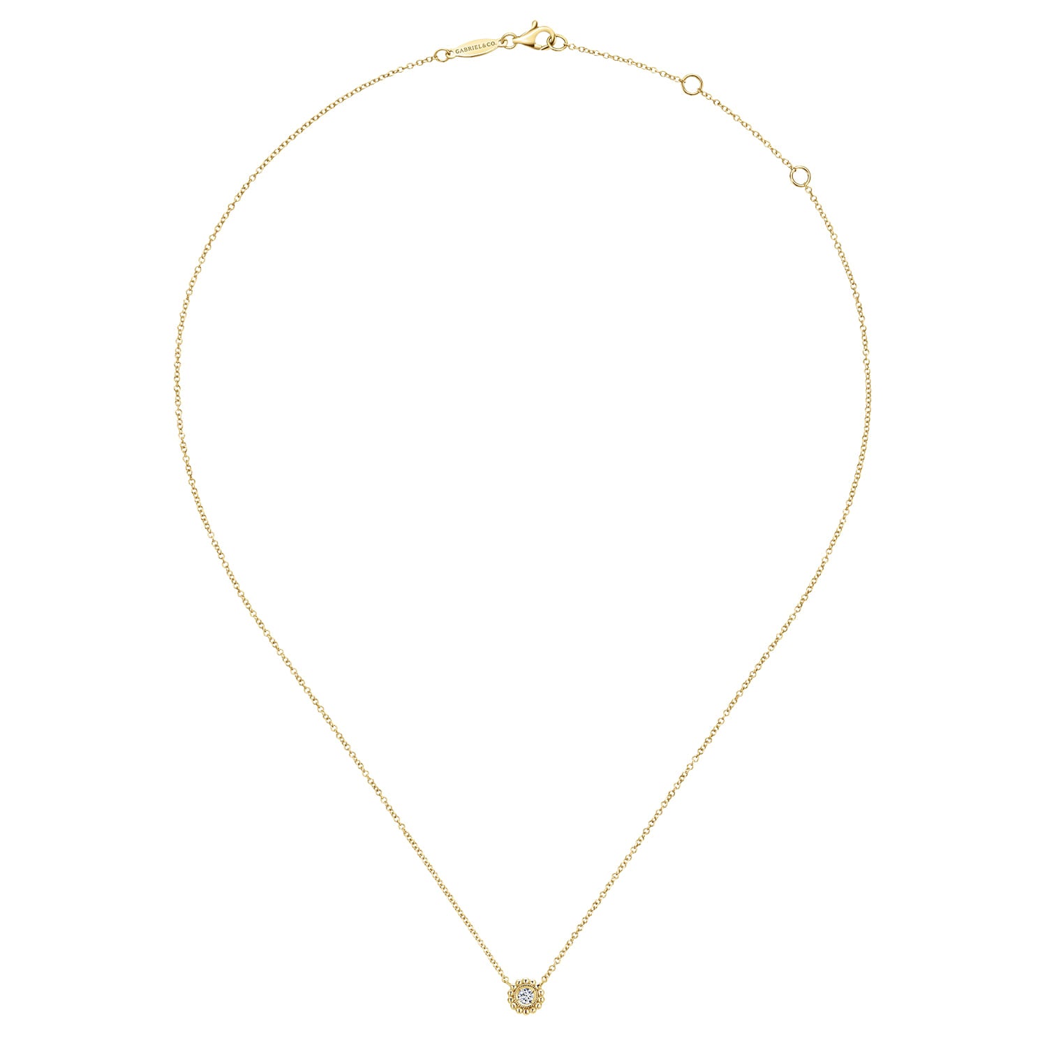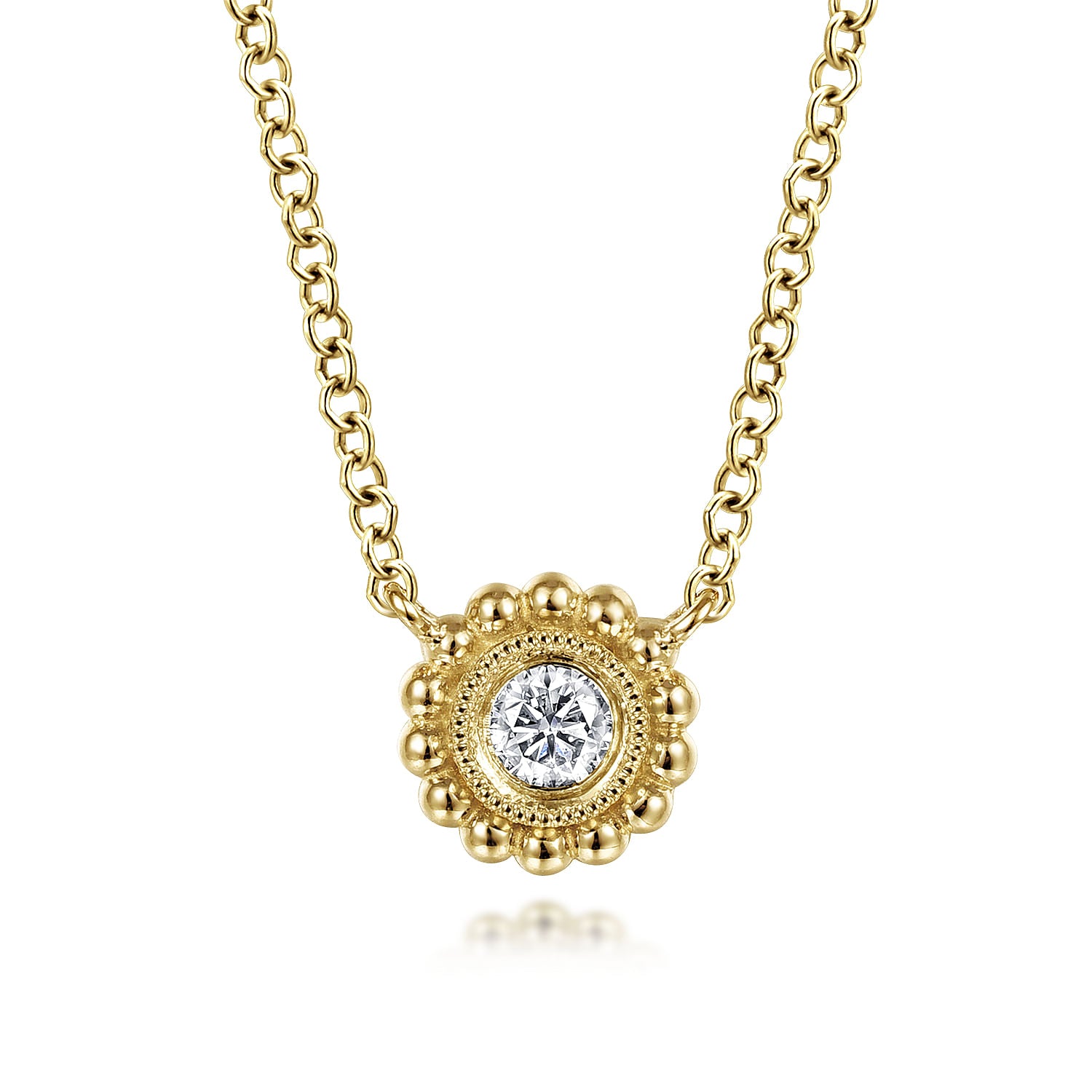 You're reviewing: 14K Yellow Gold Beaded Round Bezel Set Diamond Pendant Necklace