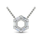 Diamond Baguette Double Row Open Honeycomb Pendant Necklace
