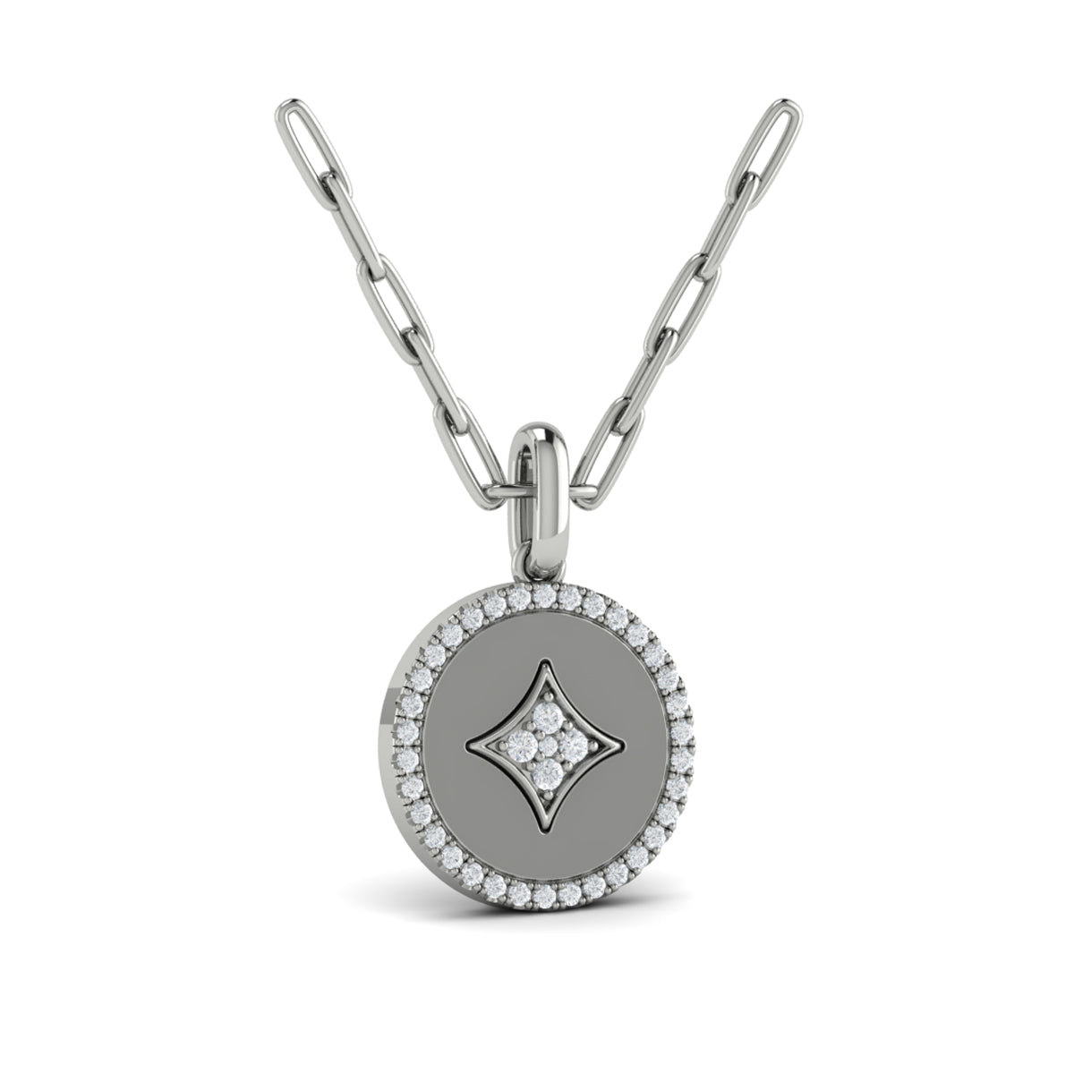 Diamond Baguette Double Row Open Honeycomb Pendant Necklace