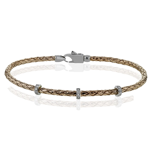 This easy-to-wear bracelet features three white gold stations set with .10ctw of diamonds set in a woven braid of 18k rose gold.