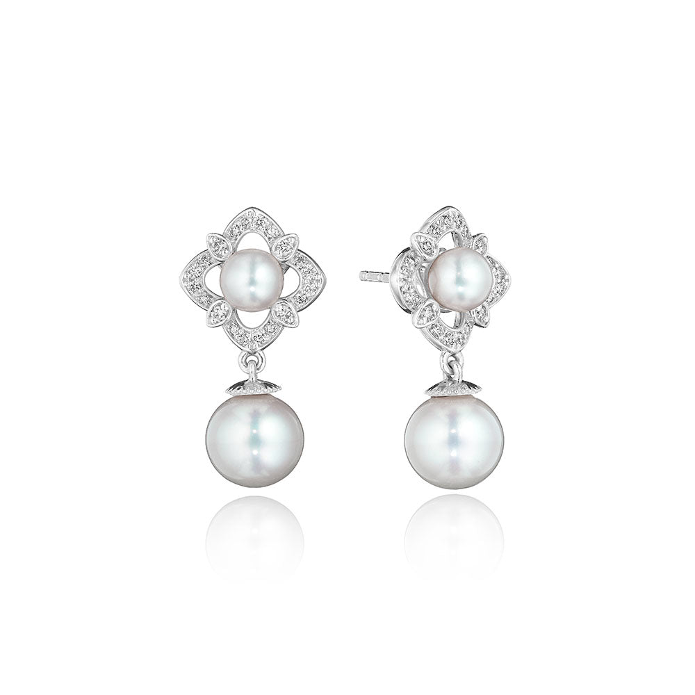 Petal Diamond & Pearl Dangle Earring