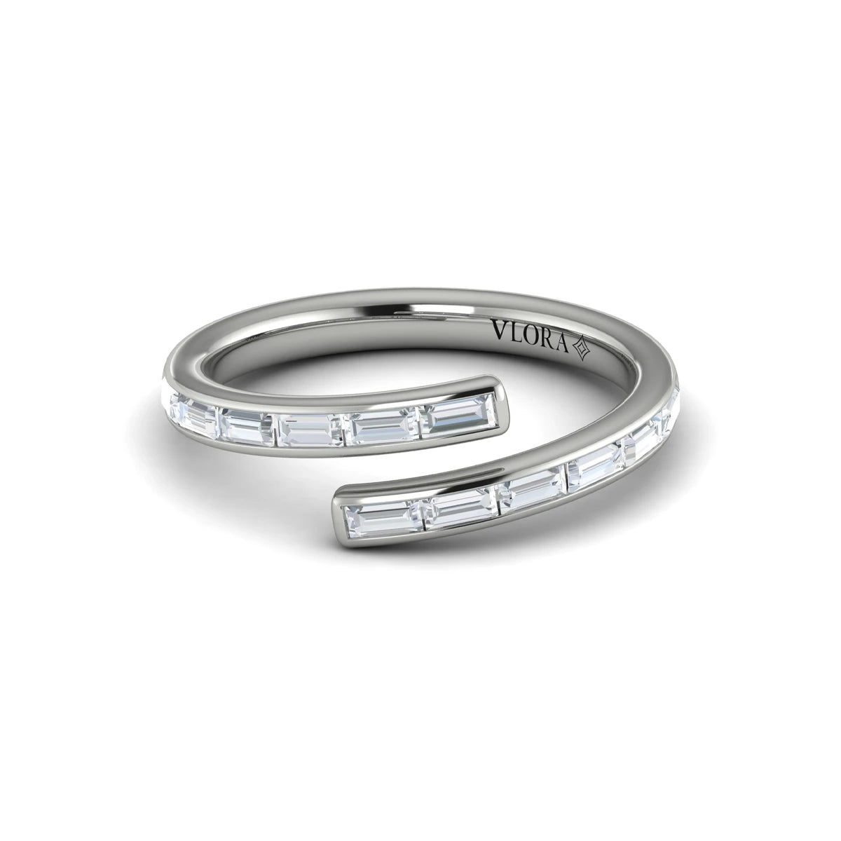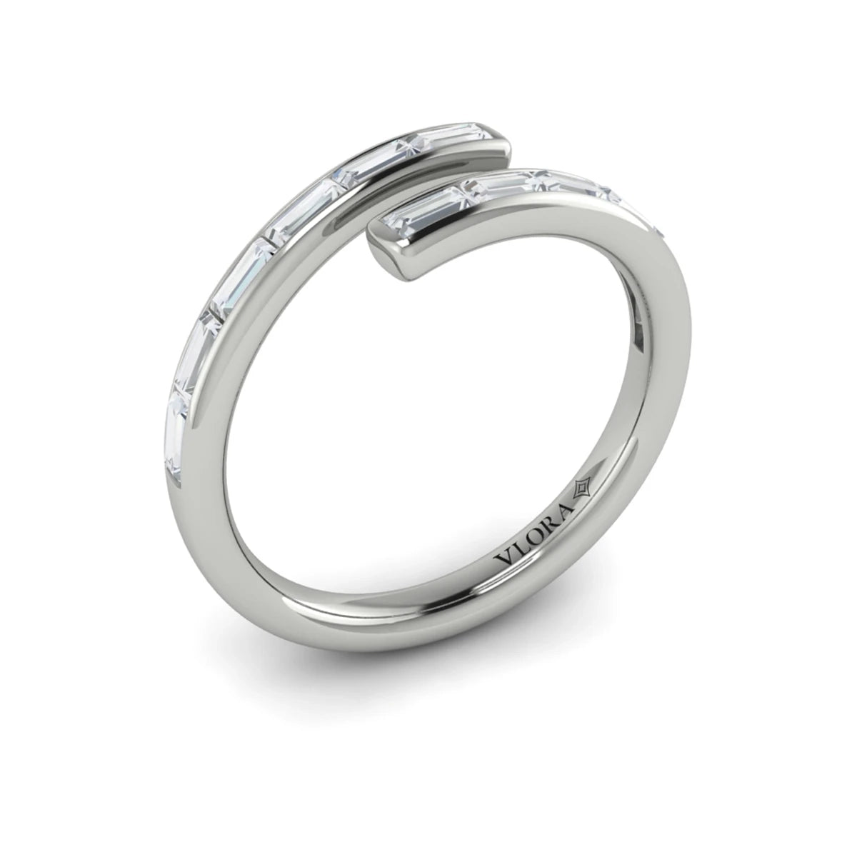 Channel Set Diamond Baguette Open Wrap Ring Platinum
