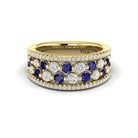 Diamond and Blue Sapphire Cluster Statement Ring