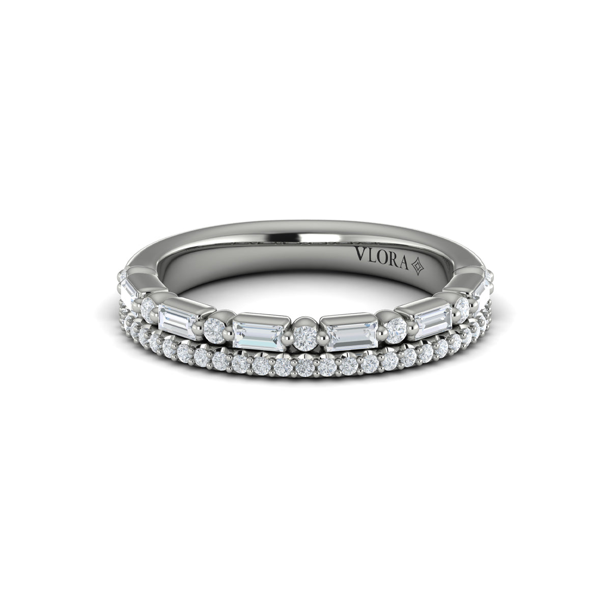 Diamond and Diamond Baguette Two Row Ring
