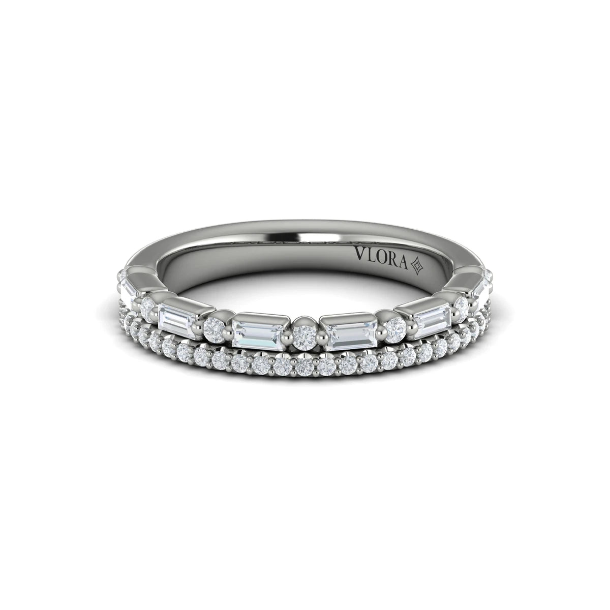Diamond and Diamond Baguette Two Row Ring White Gold