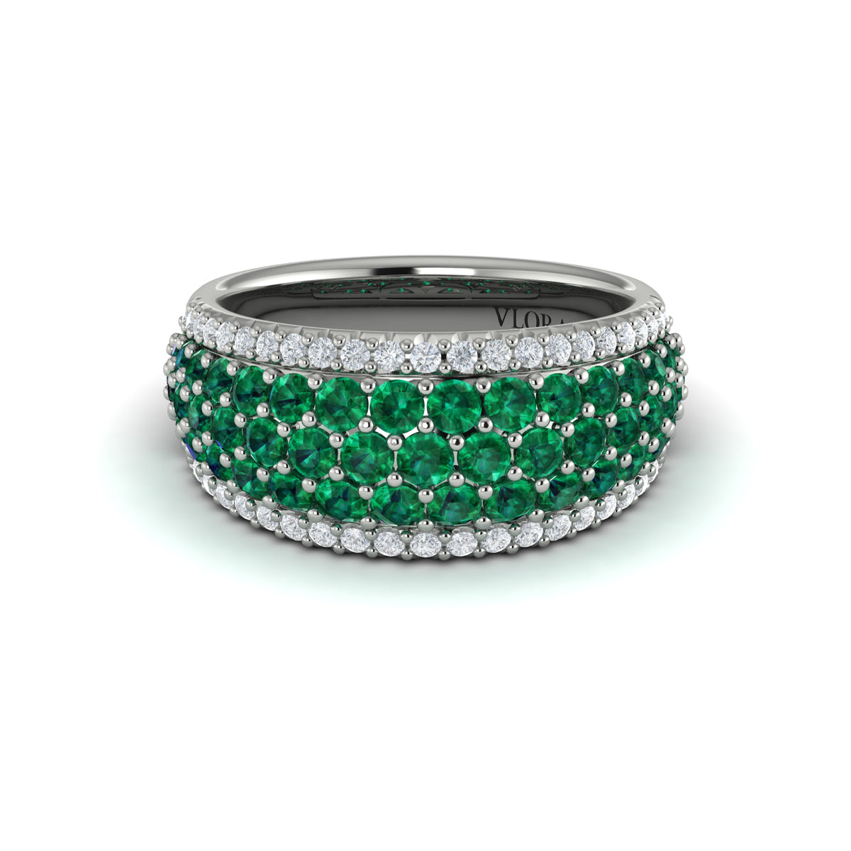 Diamond and Emerald Multi-Row Statement Ring