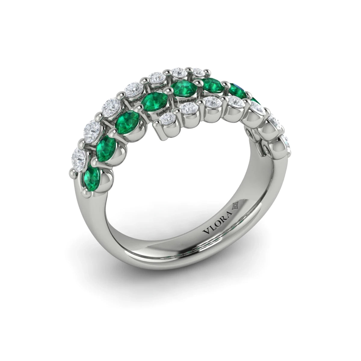You're reviewing: Diamond and Emerald Three Row Wrap Ring White Gold