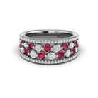 Diamond and Ruby Cluster Statement Ring