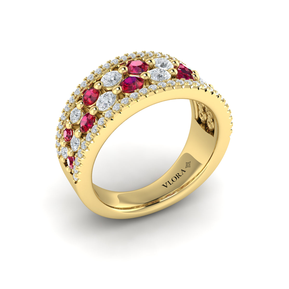 Diamond and Ruby Cluster Statement Ring