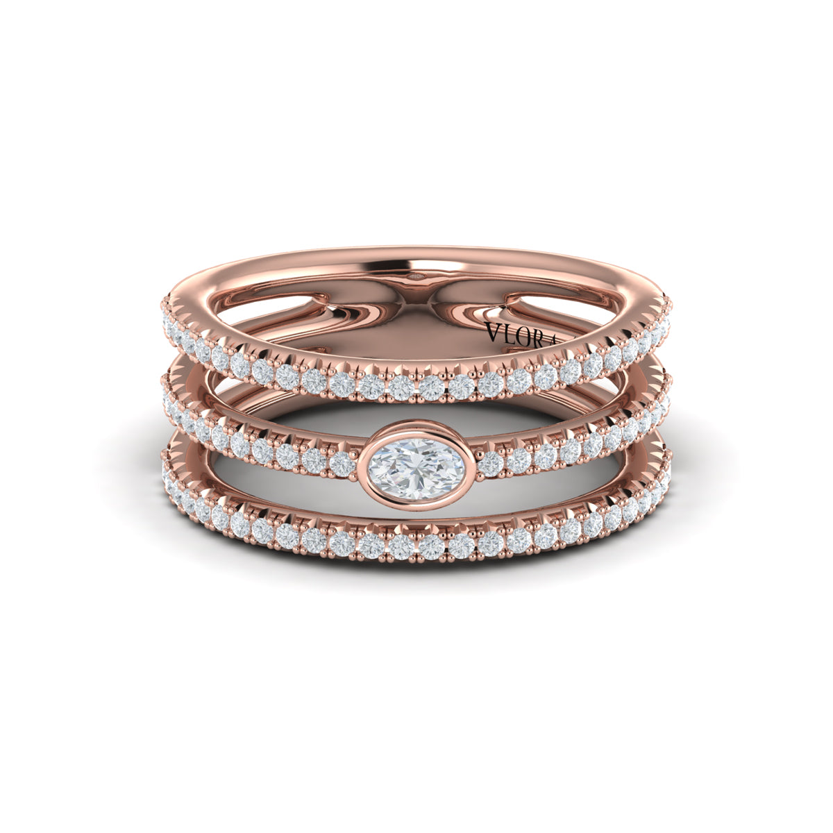 Diamond Open Three Row and Oval Centerstone Ring