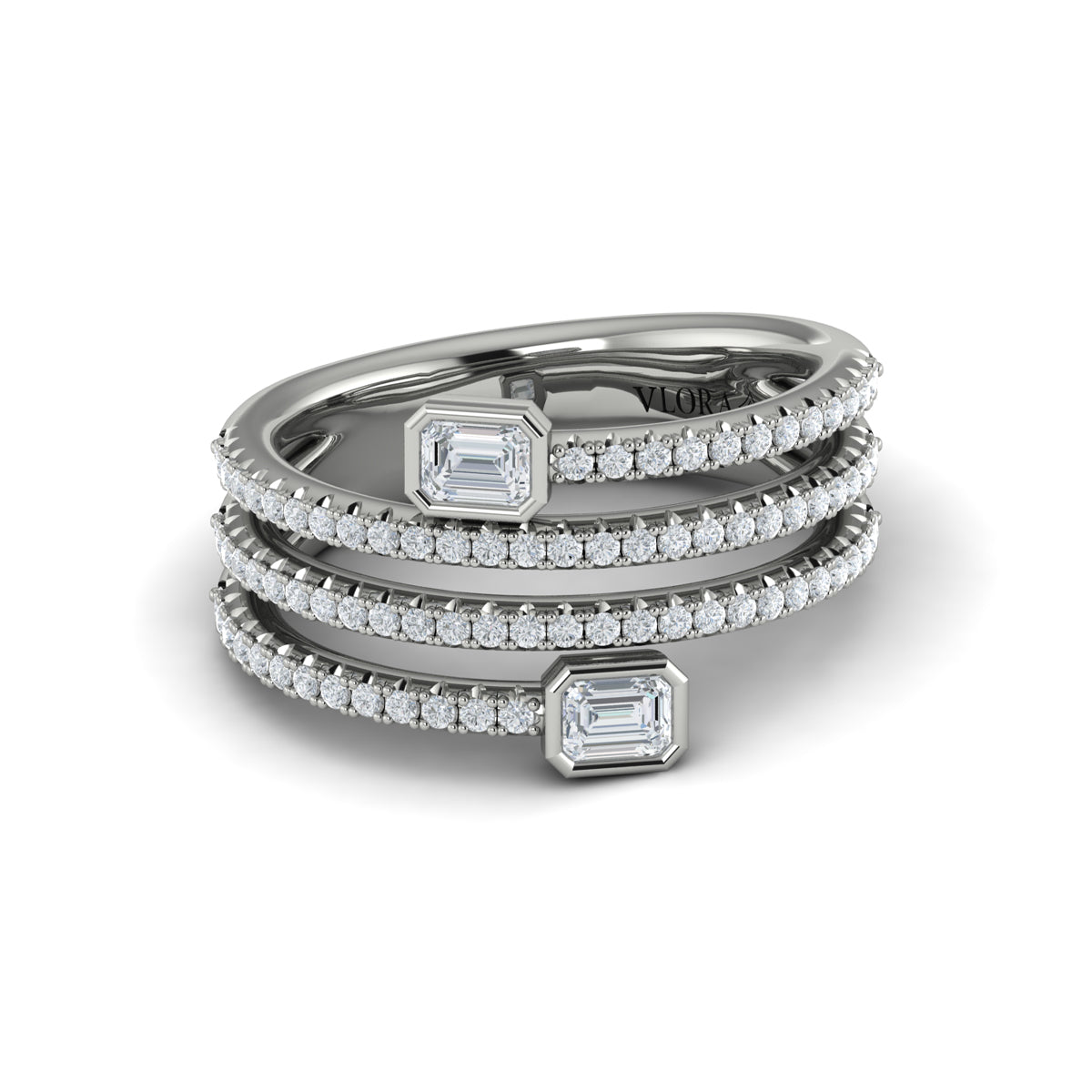 Diamond Three Row Diamond Baguette Wrap Ring