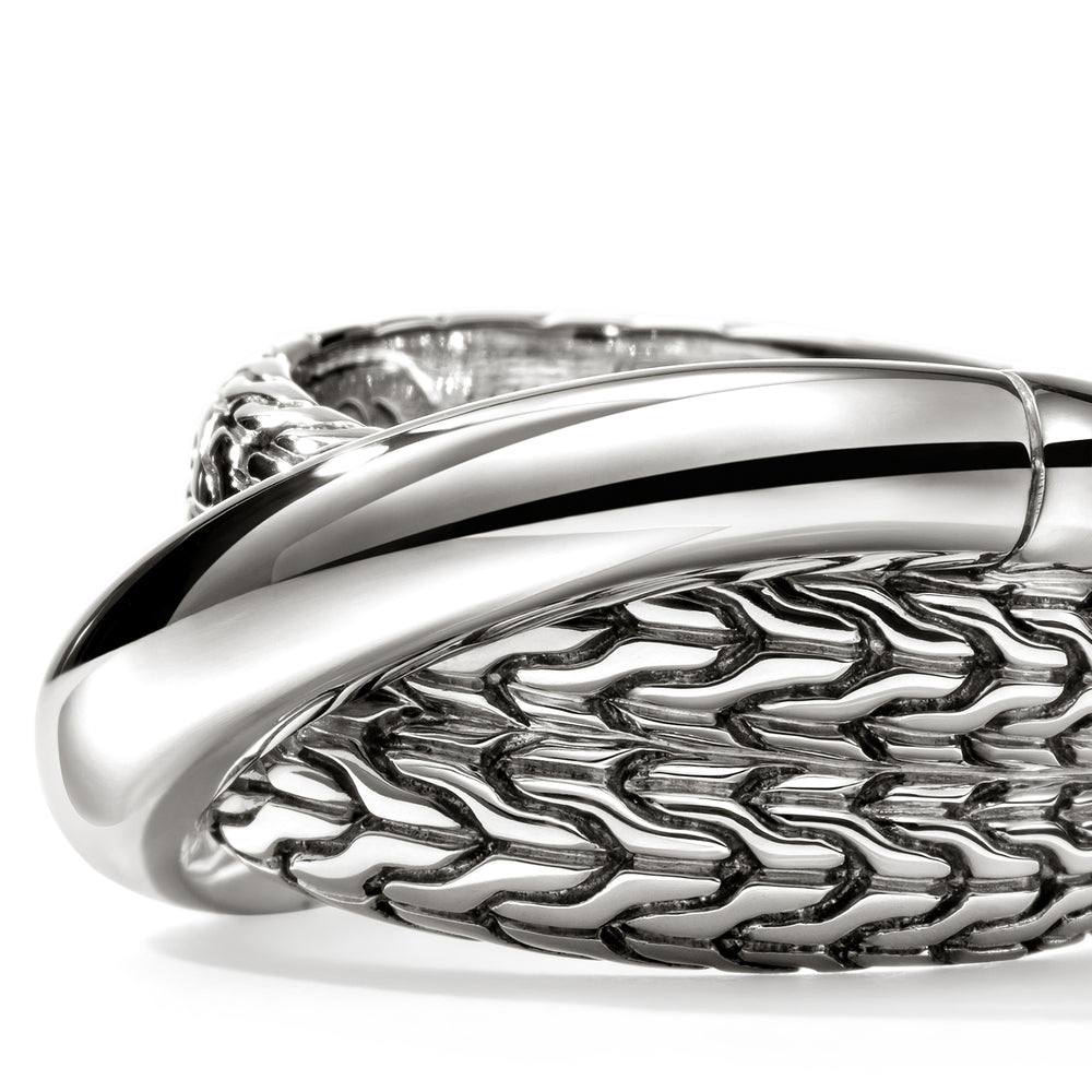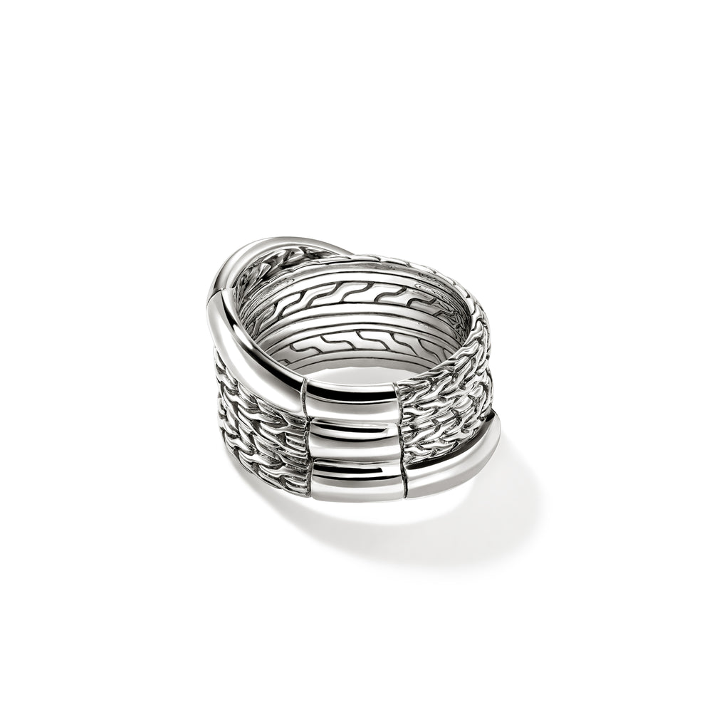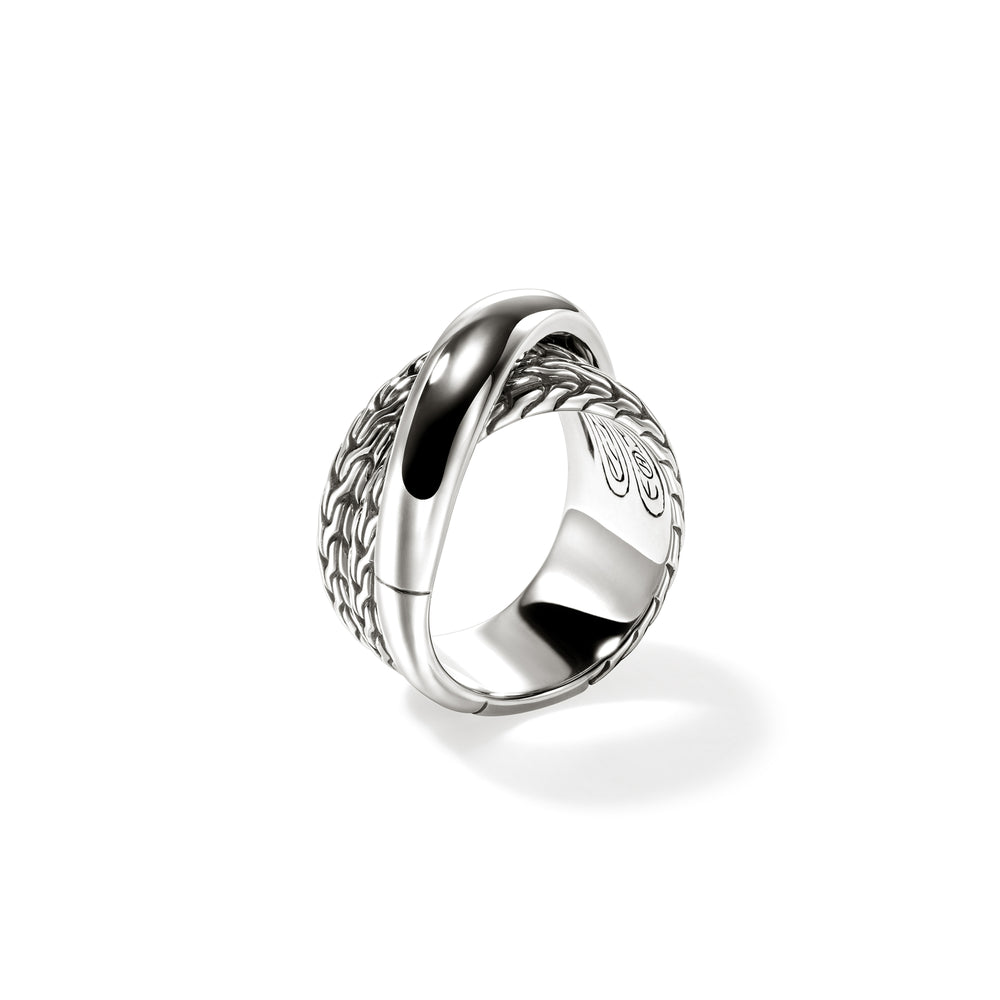 This essential crossover band ring features John Hardy's signature carved chain motif. Artisan handcrafted in 100% reclaimed sterling silver.