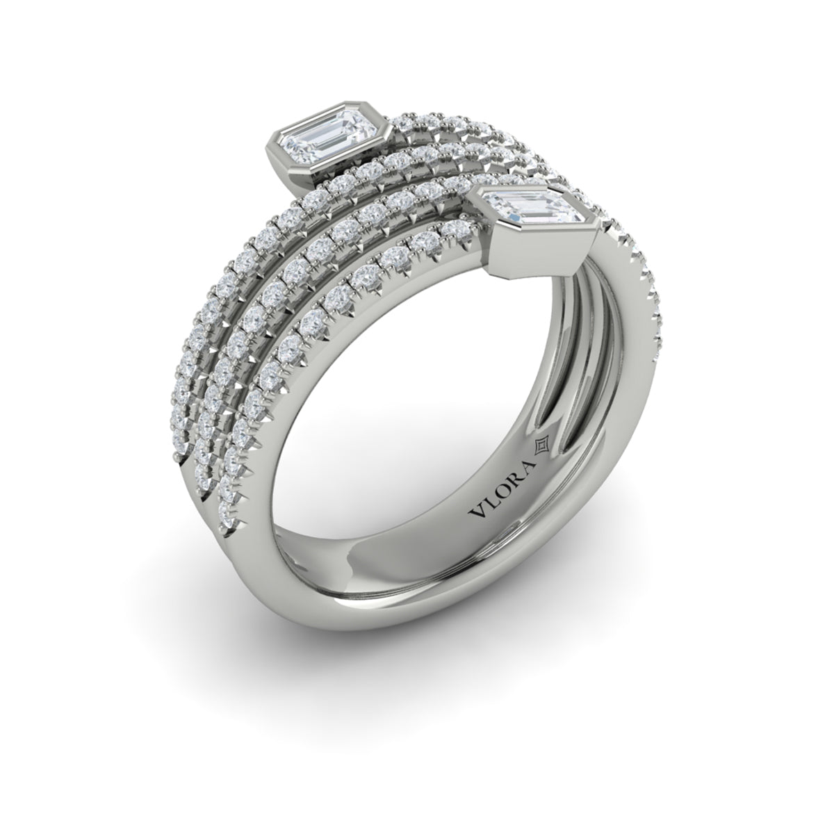 Diamond Three Row Diamond Baguette Wrap Ring