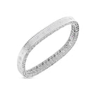 Satin Finish Slim Bangle With Fleur De Lis Diamonds - 18K White Gold