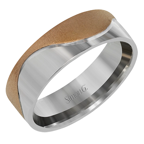 This modern two-tone 14k gold men's band features a combination of rose and white gold in a contemporary design.