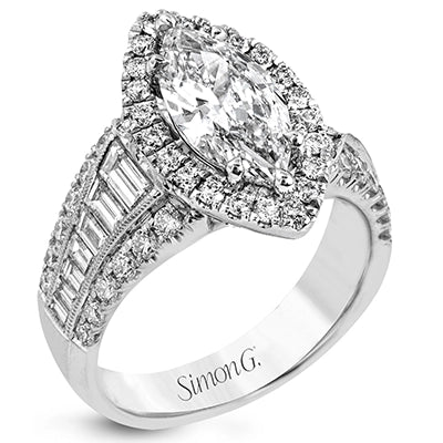 This gorgeous engagement ring makes quite the appearance with .83 ctw of round diamonds along with .83 ctw of baguette diamonds.