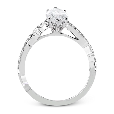 A unique twisting design on the band makes this engagement ring stand out from the rest. This particular style is made to perfect hold a marquise shaped center stone.