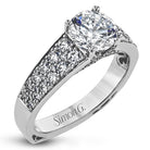 This elegant diamond engagement ring from our Simon Set collection shimmers with 0.70 ctw of brilliant white diamonds in a cathedral setting & on the profile.
