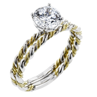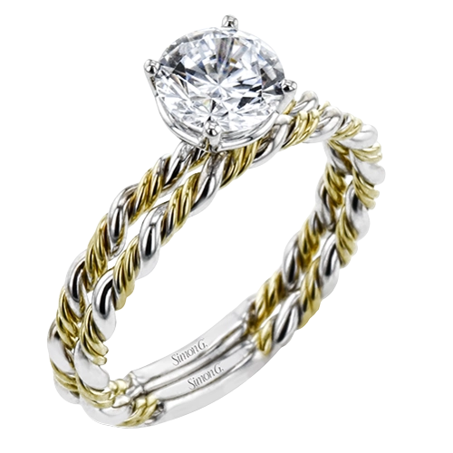 Two tones of 18k gold twist around each other in this contemporary yet timeless engagement ring.