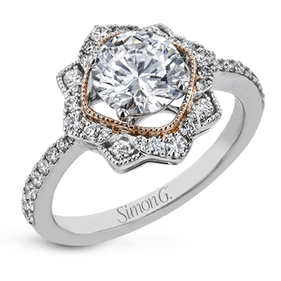 This detailed 18k white and rose gold ring design features .43 ctw of white diamonds.