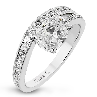 This modern engagement ring from our Lightning collection showcases a row of channel set diamonds 0.35 ctw., in a dynamic design featuring an Oval main center diamond.