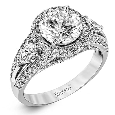 Reflecting a charming vintage design, this dazzling white gold engagement ring features .63 ctw of round cut white diamonds and .51 ctw of pear shaped white diamonds.
