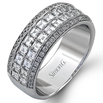 The perfect band for a special celebration, this anniversary ring features 1.53 ctw. square baguettes lined by a row of round diamonds 0.27 ctw.