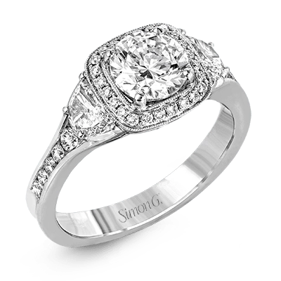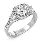 Featuring a lovely contemporary design, this white gold ring is complemented by a halo of .28 ctw round cut white diamonds and accented with .44 ctw moon shaped diamonds.