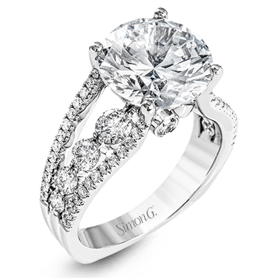 This amazing 18k white gold engagement ring contains 1.66 ctw of white round brilliant diamonds in a modern yet classic design.