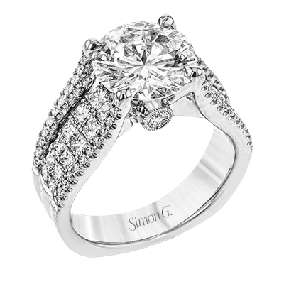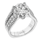 This bold 18k white gold engagement setting contains 1.04 ctw of princess cut diamonds alongside .40 ctw of round brilliant diamonds.