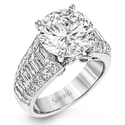 Crafted from 18k white gold, this modern engagement ring commends attention with 1.34 ctw of princess cut diamonds in combination with 1.42 ctw of baguette diamonds.