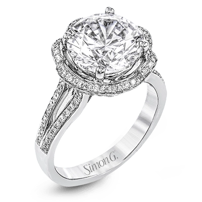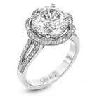 This lovely 18k white gold engagment setting features a wavy halo reminiscent of an opening flower set with .50 ctw of white diamonds.