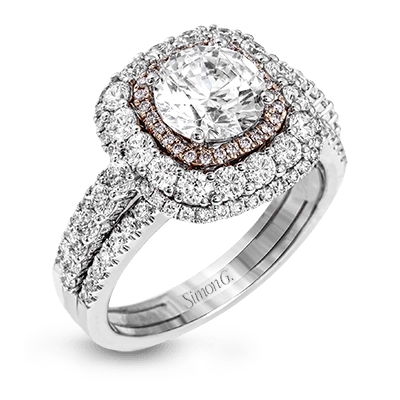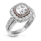 This bold design combines tones of pink and white with 1.11 ctw of sparkling white diamonds in 18k white gold complimenting .07 ctw of pink diamonds in 18k rose gold.