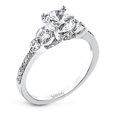 Timelessly beautiful, this white gold engagement ring's stunning design features .44 ctw of round white diamonds flanking the center stone with a lovely tapered effect.