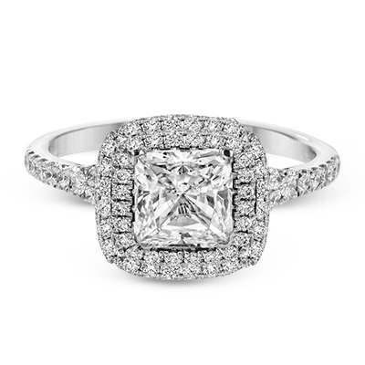 This beautiful, classic style setting features a double halo design built for an oval center stone. It contains .40 ctw of side diamonds.