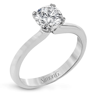 This sleek, unadorned white gold ring provides an elegantly modern setting for a single, central stone.