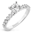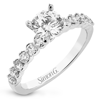 18K diamond engagement ring 0.50 ctw., features a half bezel setting on each individual side diamond which adds a modern bubble look to this ring