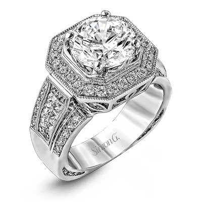 Featuring a dramatic contemporary design, this elegant white gold ring features .87 ctw of round cut white diamonds and .70 ctw of princess cut diamonds.