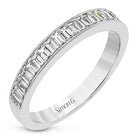 This sleek anniversary band features brilliant baguette cut diamonds 0.56 ctw., set with a delicate millgrain edge from our Simon set collection