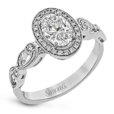 Reflecting a lovely romantic design, this white gold classic engagement ring features .16 ctw round cut white diamond accents.