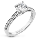 Sleek and lovely, this white gold engagement ring has an elegant design enhanced with .14 ctw of round white diamonds.