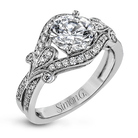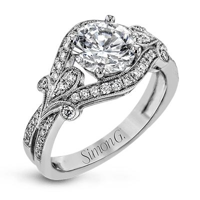 This absolutely exquisite white gold engagement ring dazzles the eye with .38 ctw of round white diamonds in a glamorous, vintage-inspired setting.