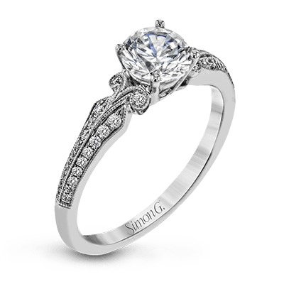This remarkable white gold ring features .18 ctw of round white diamonds and delicate milgrain edging for a sleek, romantic look.