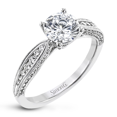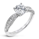 Delightful details abound in this 18k white gold engagement ring, set with .33 ctw of side diamonds.