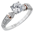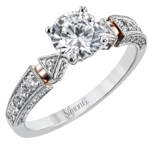 This ring makes us want to dance the Charleston, with delightful deco accents like milgrain details, touches of rose gold, and geometric shapes that highlight the center stone.