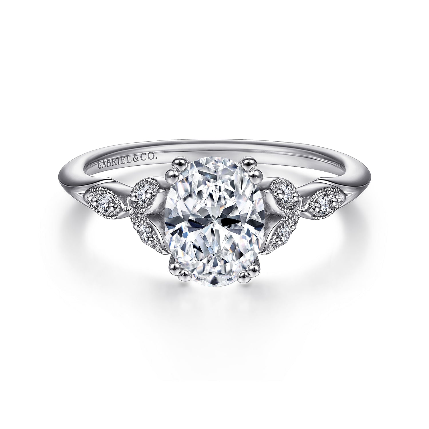14K White Gold Oval Diamond Engagement Ring
