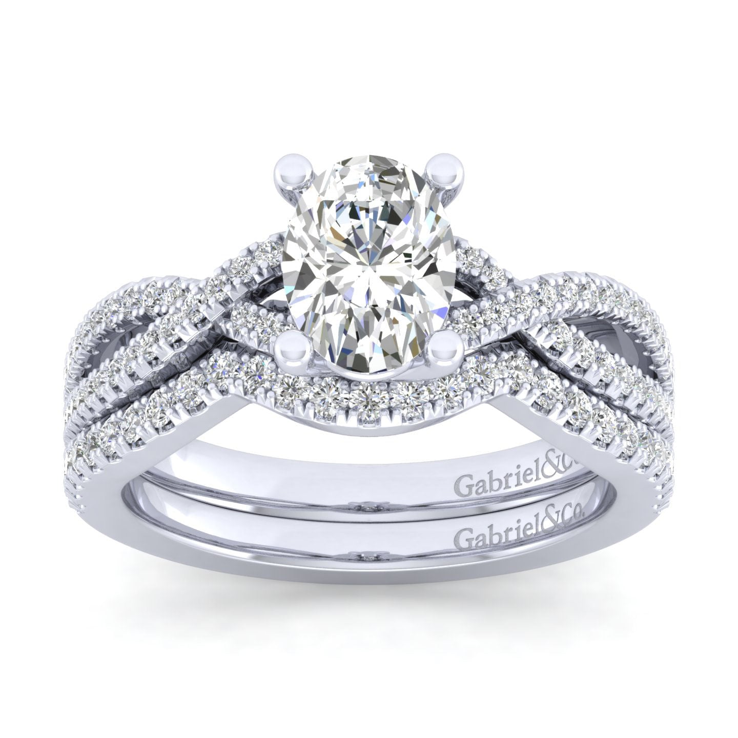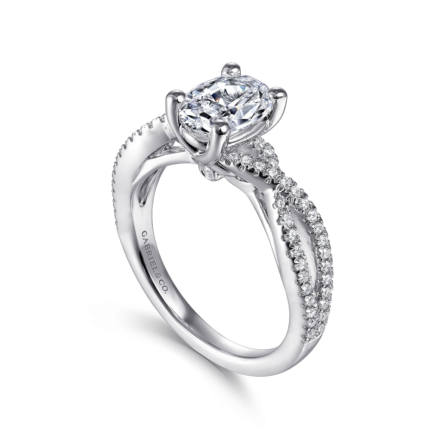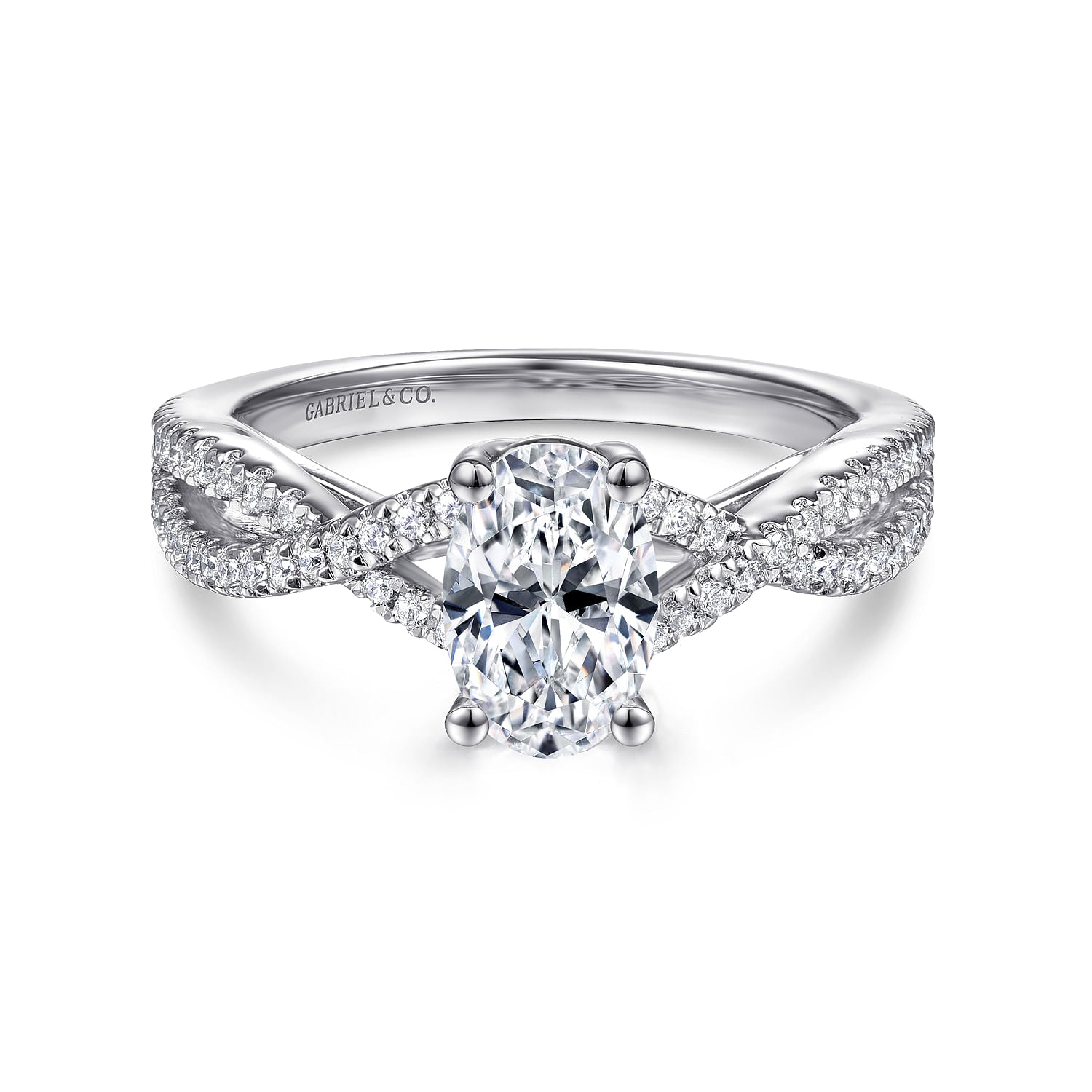 14K White Gold Twisted Oval Diamond Engagement Ring