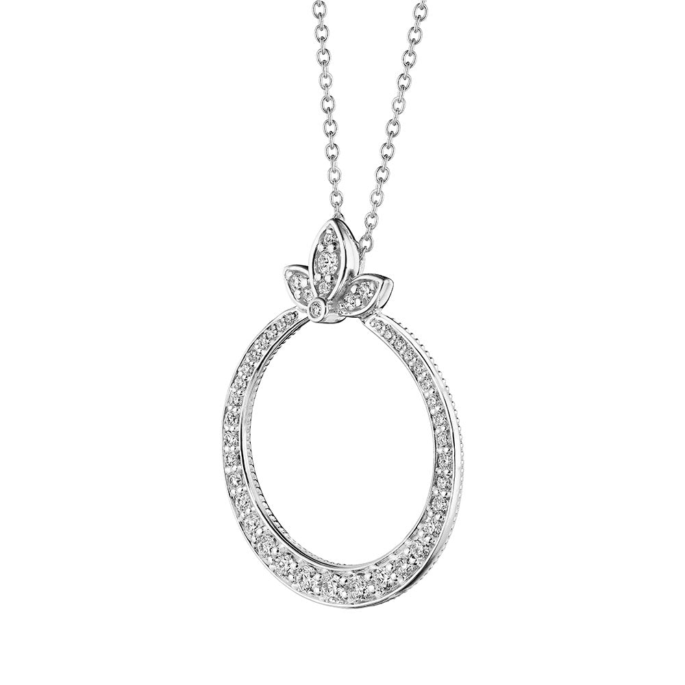 J-0461702-WP 18K white gold diamond pendant with 0.60ctw diamonds on 18" chain adjustable to 16".