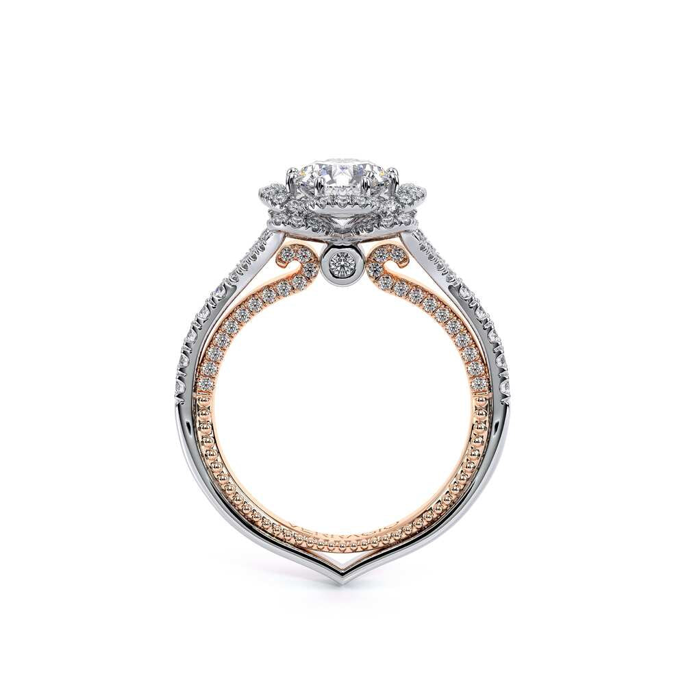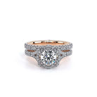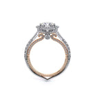 COUTURE-0444R One of a Kind Double Floret Engagement ring that features a pave set cathedral diamond band, the subtle sparkle of our half diamond Riviera, adorned with the Verragio Crest and our Verragio Signature Beading, completed with the Couture shank.