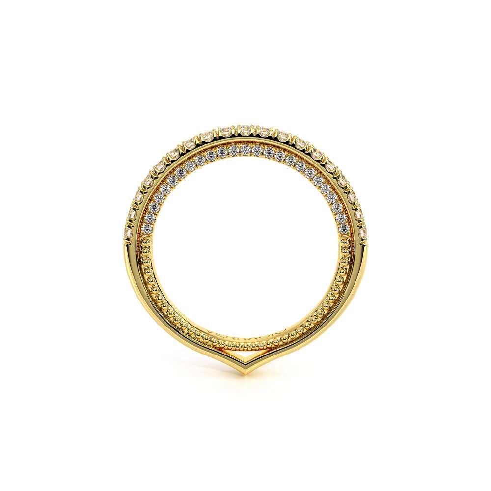 COUTURE-0444W Dazzling Wedding band pave with round brilliant diamonds, featuring Half Diamond Riviera-Signature Beading profile, completed with the Couture pointed shank.